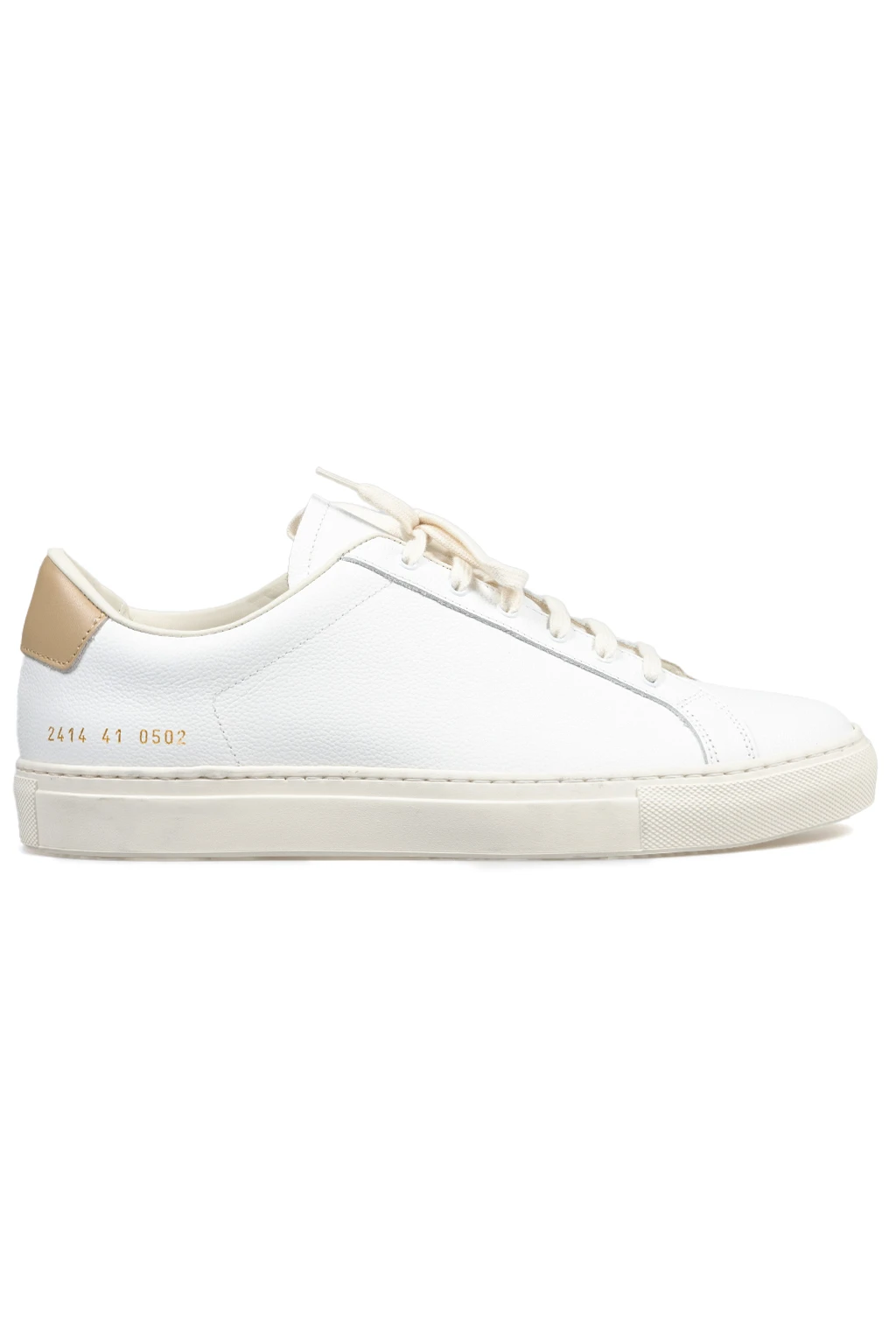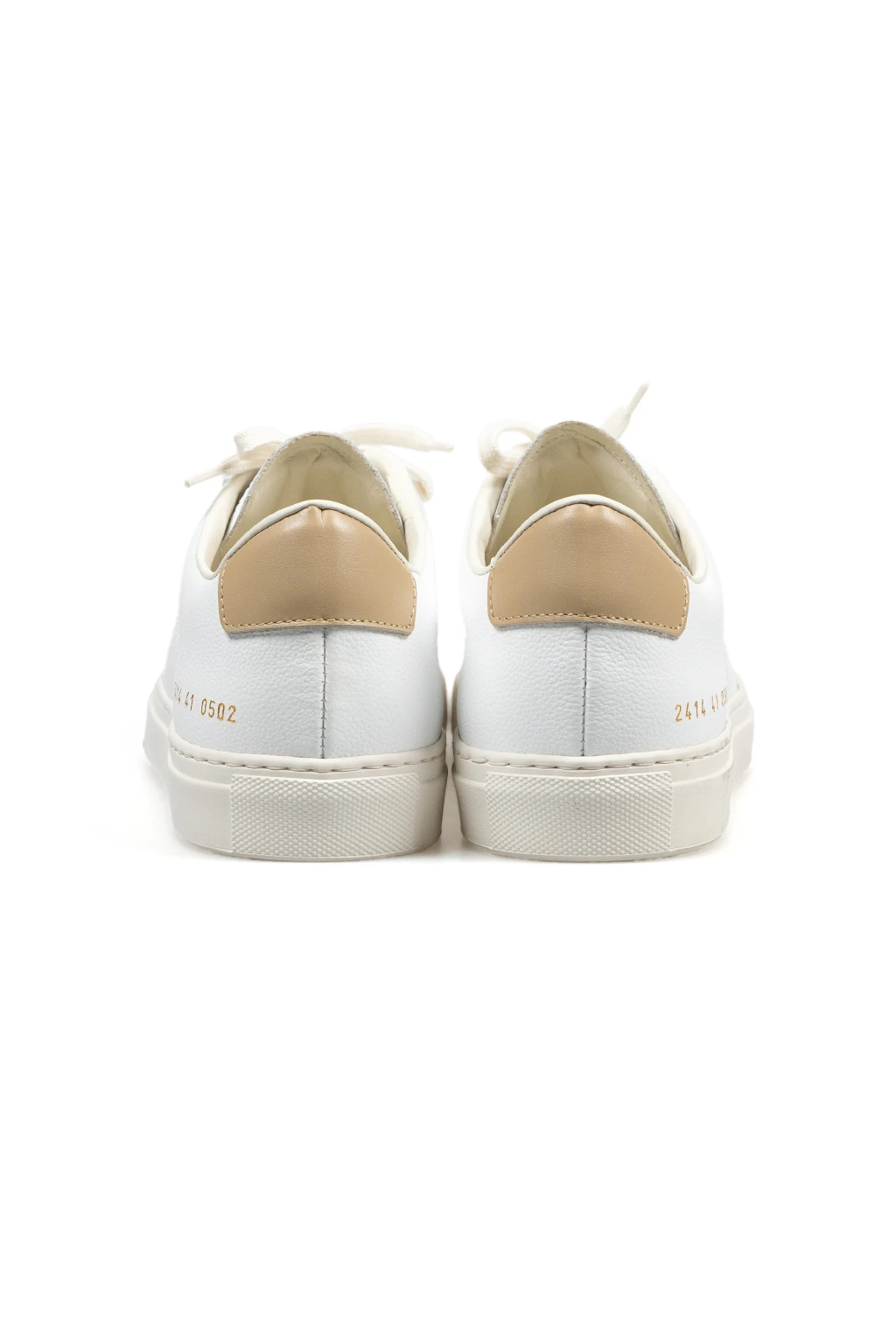 - Series number stamp in gold-tone at outer heel