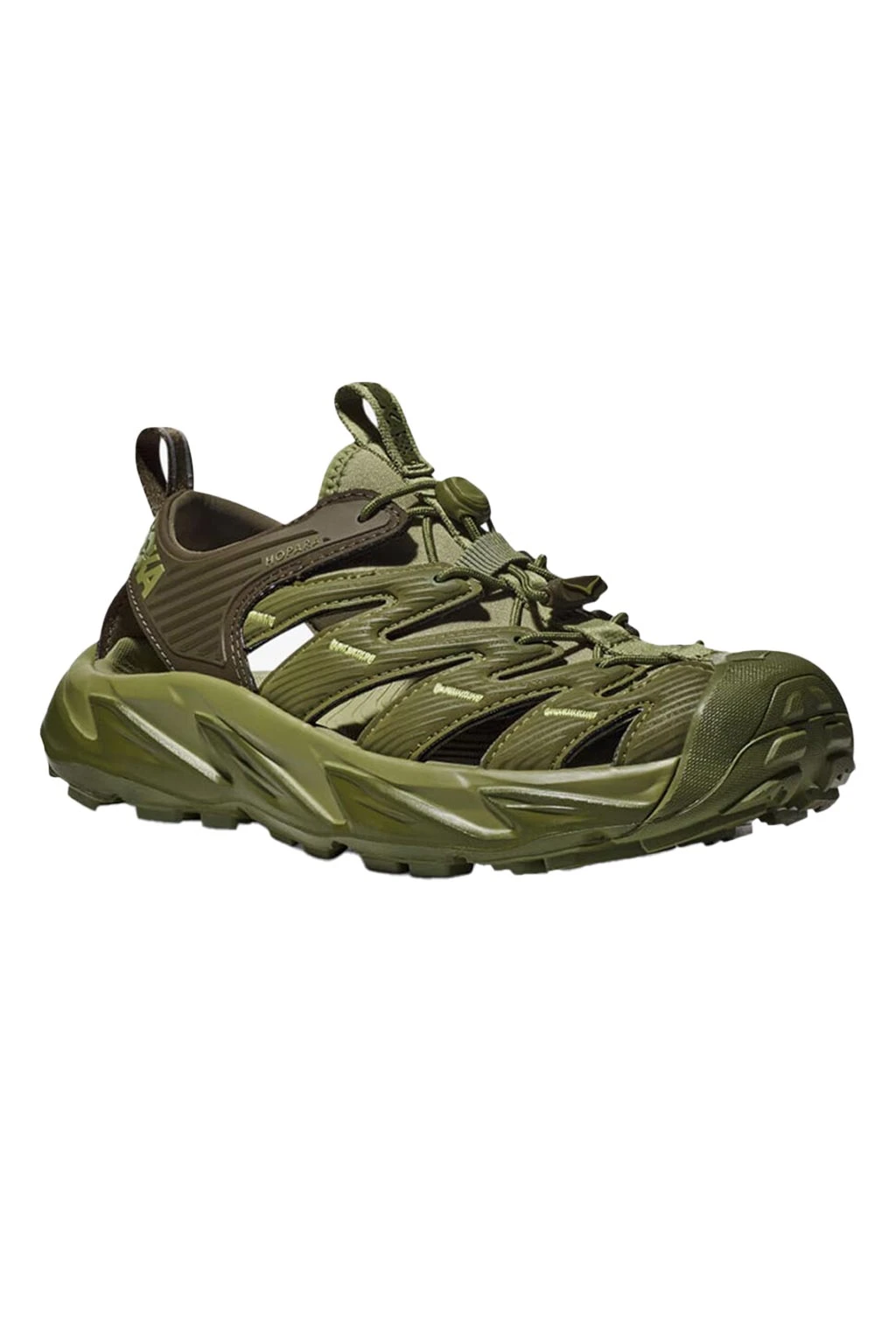 A true outdoor explorer, the Hopara easily navigates through any terrain — wet or dry. Designed through the HOKA lens, this shoe will blow other mountain sandals out of the water. The Hopara has a synthetic upper with strategic cutouts for drainage while still providing a secure lockdown. It includes a neoprene collar for flexibility and comfort plus a quick-lace system. Providing a responsive yet cushioned feel thanks to a rubberized EVA midsole, the Hopara also features a rubberized toe cap for protection and a sticky rubber outsole for traction in a variety of conditions. Add in 4mm multidirectional lugs for even more grip and the Hopara is your key to adventure.